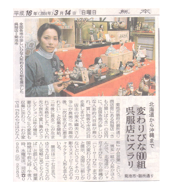 20040314 熊日新聞 | 〔創業109年〕きものサロン和の國|熊本ホテルキャッスル横