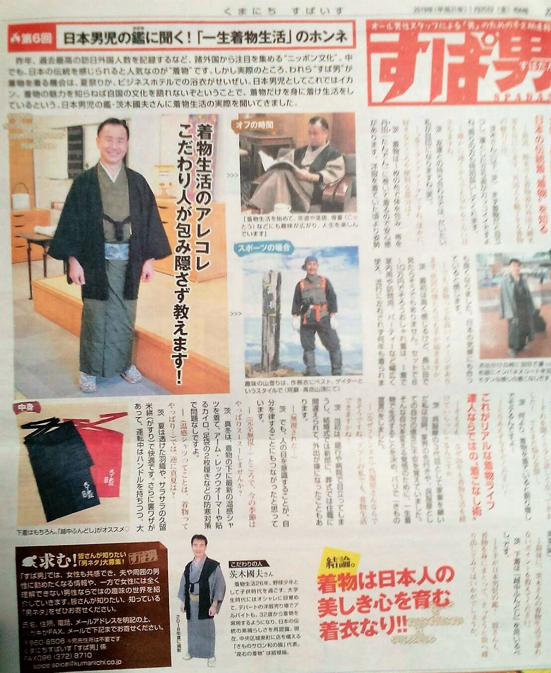 本日は、國さんが取材を受けた【すぱ男(だん) 第6回 日本男児の鑑(かがみ)に聞く!「一生着物生活」のホンネ/22面】をご紹介いたします。