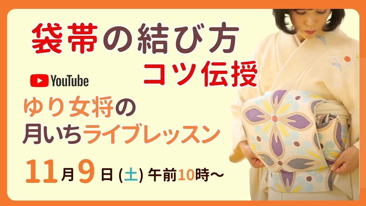 ずっと名古屋帯でしたが、「袋帯の結び方」のコツをお話しさせていただく予定です。