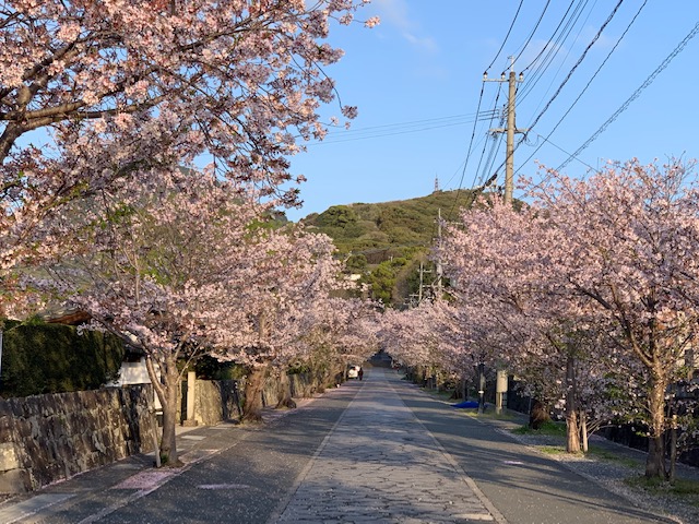 石畳の参道の桜並木も、春の日差しを浴びて微笑んでいました。