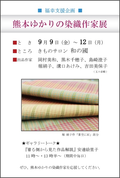 来る「熊本ゆかりの染織作家展」のご案内ハガキができましたので、お知らせいたします。