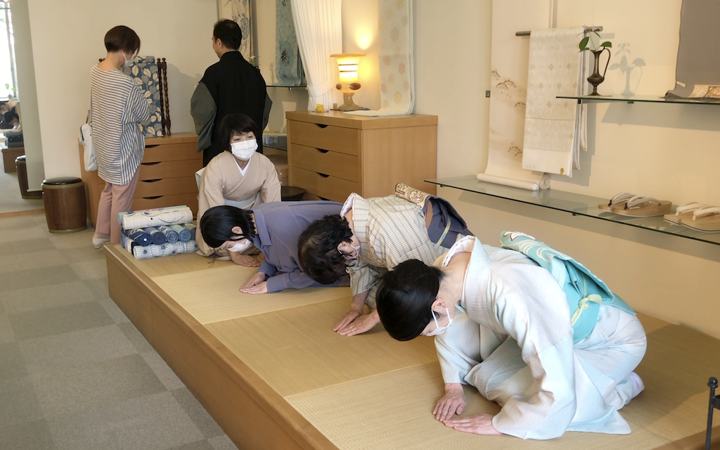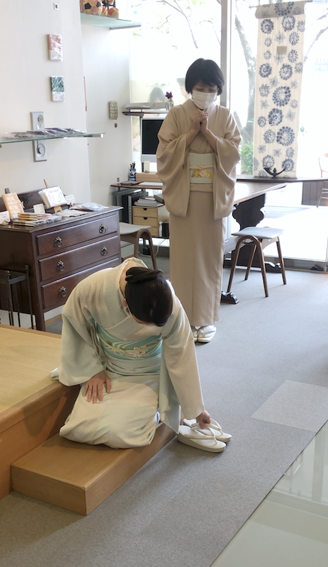 畳の上では、玄関の上がり方(履き物を脱ぐとき)、着座の時のお辞儀の仕方など・・・