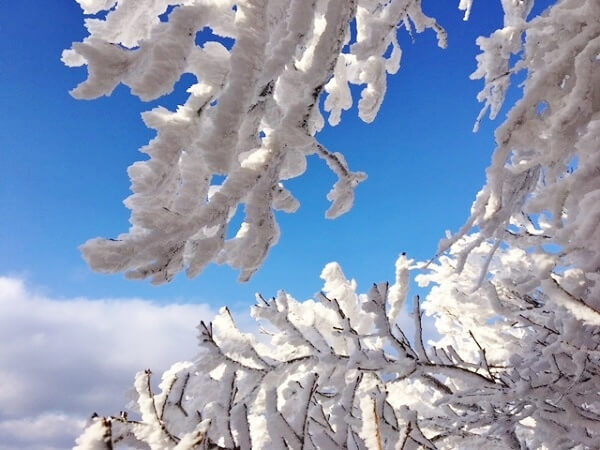 まるで白龍が躍動すかのような樹氷、氷花との出会いは冬山の楽しみの一つです。