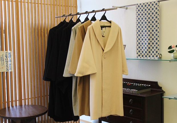 男性用は、國さんもご愛用のとんびコートをご用意しております。(写真左奥3点、黒のコート)こちらがまた、カッコイイのです!國さんのご着用時に、またご紹介させていただきます。