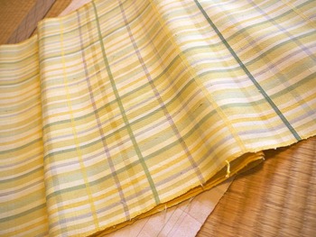 下に合わせてあるきもの地も、吉田さんの作品「レモンフィールド」です。