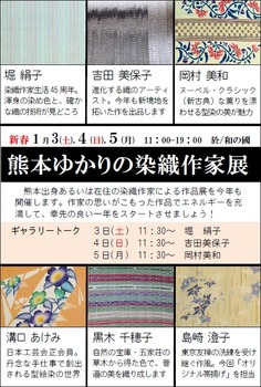 「第5回熊本ゆかりの染織作家展」もあとひと月を迫り、このたびご案内のハガキができましたのでお知らせいたします。