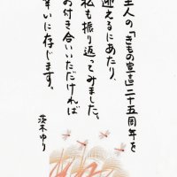 皆さま、こんばんは。茨木ゆりです。 今年は、主人の『きもの宣言』から25周年ということで、先日お客様にご案内状を出させていただきました。その中に、私からもご挨拶文を入れさせていただきました。お付き合いいただけましたら、あ …
