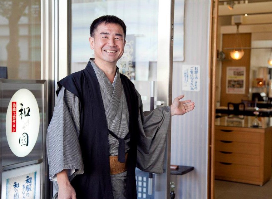 創業106年を迎える「きものサロン和の國」の代表、茨木國夫・60歳です。
