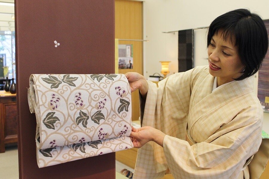 コーディネートの提案(着物・帯・帯揚げ・帯〆・履物)、着物に合う帯、帯揚げ・帯〆の色の組みあわせ方、また履きものまでトータルコーディネイトのご提案をさせていただきます。
